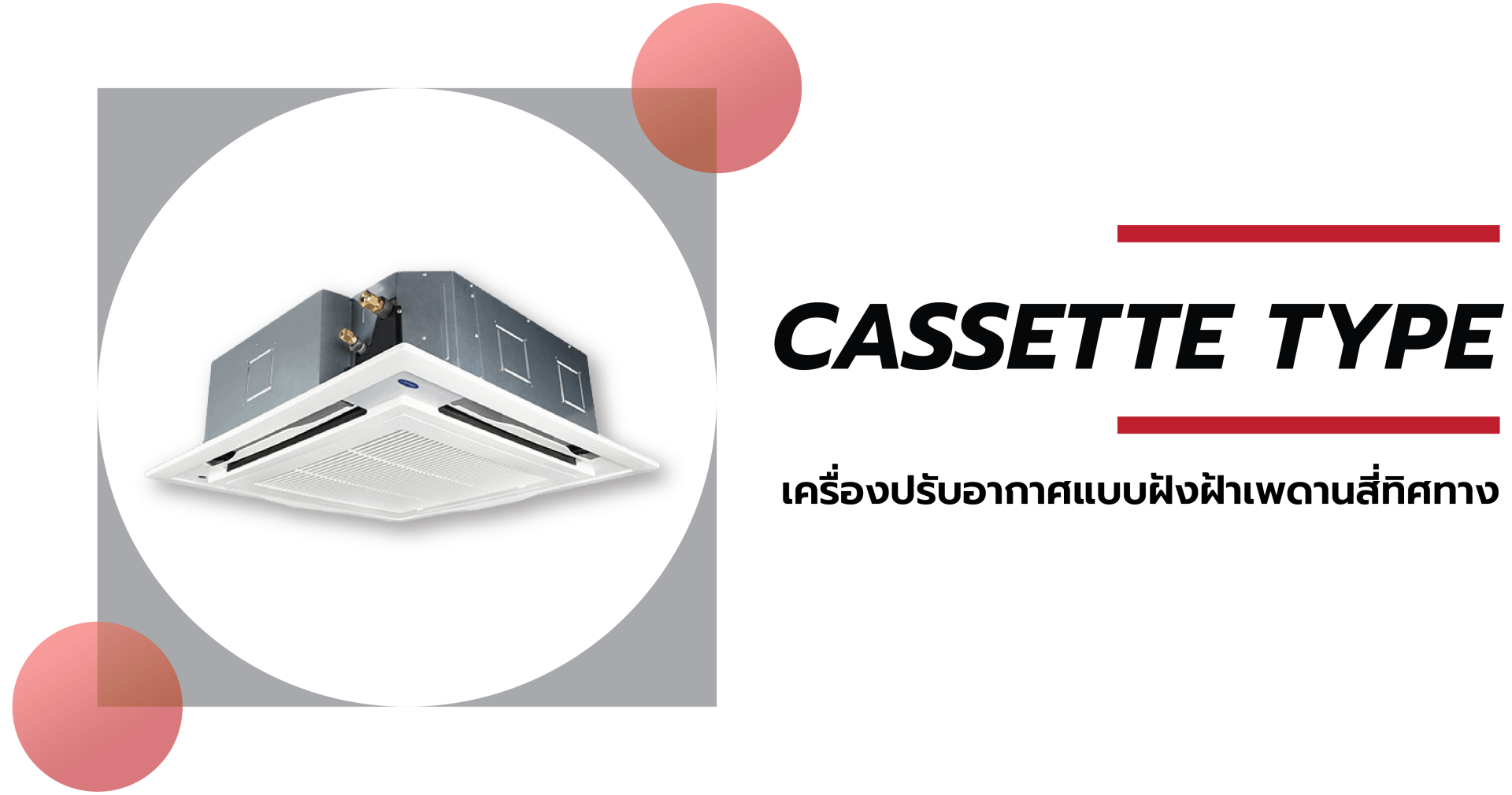 อาจนับเป็นอีกรูปแบบหนึ่งที่นิยมไม่แพ้กันรองลงมาจาก แอร์ติดผนัง (Wall type) เลยก็ว่าได้ เราสามารถสร้างแอร์ฝังฝ้าเพดานให้ไม่ต้องมีตัวเครื่องยื่นออกมาเกะกะห้อง จึงเหมาะอย่างมากสำหรับบ้านโมเดิร์น เน้นดีไซน์ ที่ไม่ต้องการแอร์เครื่องใหญ่ๆ มาบดบังทัศนียภาพ นอกจากใช้ในบ้านแล้วก็เหมาะกับพื้นที่ขนาดใหญ่ เช่น ห้าง และโรงแรม ที่สร้างมาพร้อมกับระบบแอร์ฝังติดเพดาน เพื่อกระจ่ายอากาศเย็นไปให้ทั่วถึงทุกพื้นที่ แอร์ฝังฝ้าติดเพดาน (Cassette type) จึงเป็นอีกหนึ่งทางเลือกที่เริ่มมีความนิยมไม่แพ้ แอร์ติดผนัง (Wall type)