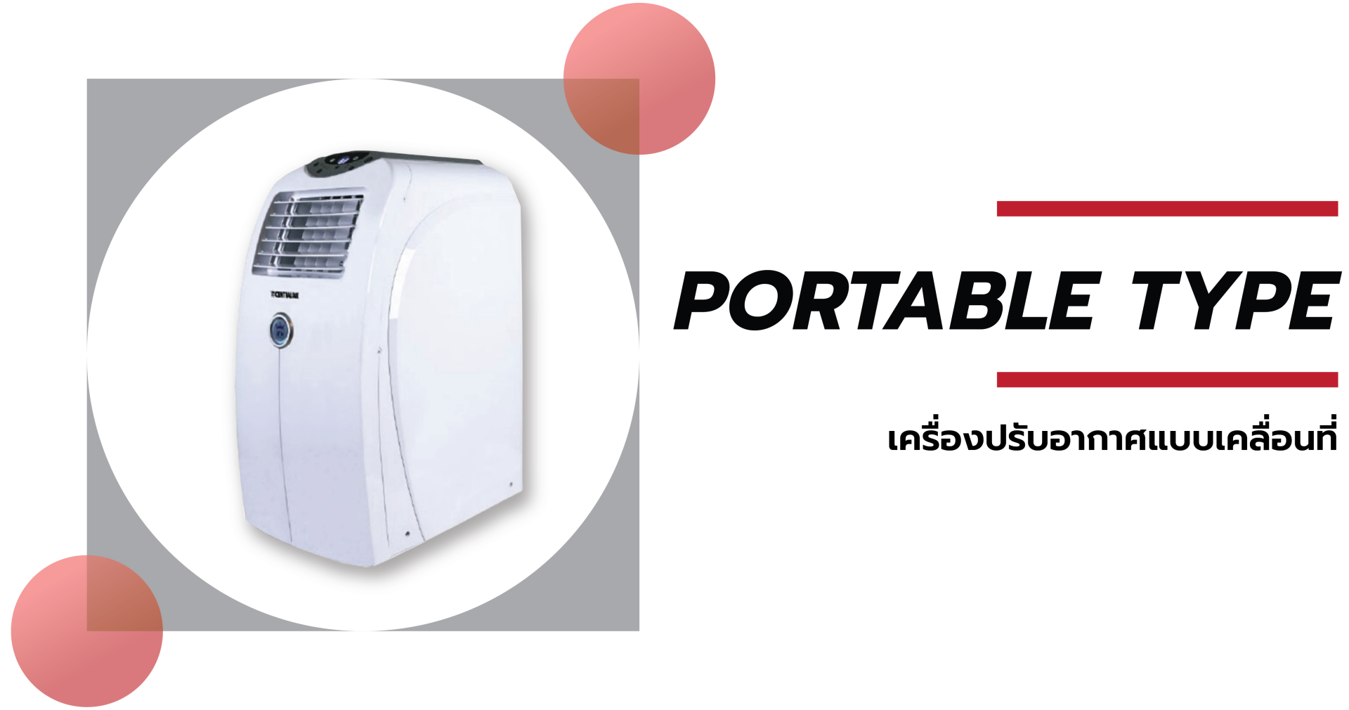 เป็นเครื่องปรับอากาศที่ไม่ต้องทำการติดตั้ง และสามารถเข็นไปใช้ได้ทุกพื้นที่ พูดง่ายๆก็คือสามารถเสียบปลั๊กใช้ได้เลย สามารถเคลื่อนที่ได้ มักนิยมใช้ควบคู่กันไปกับแอร์หลักของบ้าน ใช้เพื่อเสริมการกระจายอากาศเย็น และถ่ายเทอากาศภายในห้อง