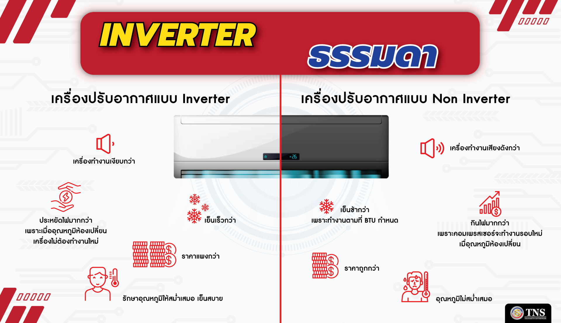 แต่แอร์ระบบธรรมดา (Non Inverter) ก็ยังมีข้อดีอยู่เหมือนกัน คือ